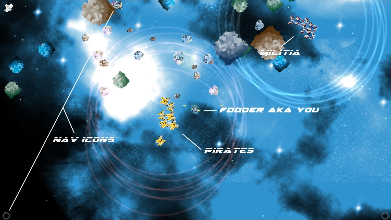 Decided on Star Nomad as name. Game is coming along very nice, all the factional AI (2 main corporate/military faction, a militia faction, pirates and merchants) is completed, fighting between faction fleets work well. The travel system is working great, jump into a jump-point take you instantly to another sector and out at the correct jump-point. A few more art (icons for equip and inventory) remain to be done.