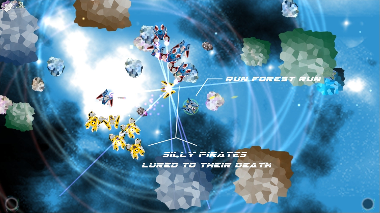 An interesting tactic here, the player has a crap starting ship, no way to fend off all those loot-thirsty pirates… so lure them into the militia patrol and let them fight each other! 😀