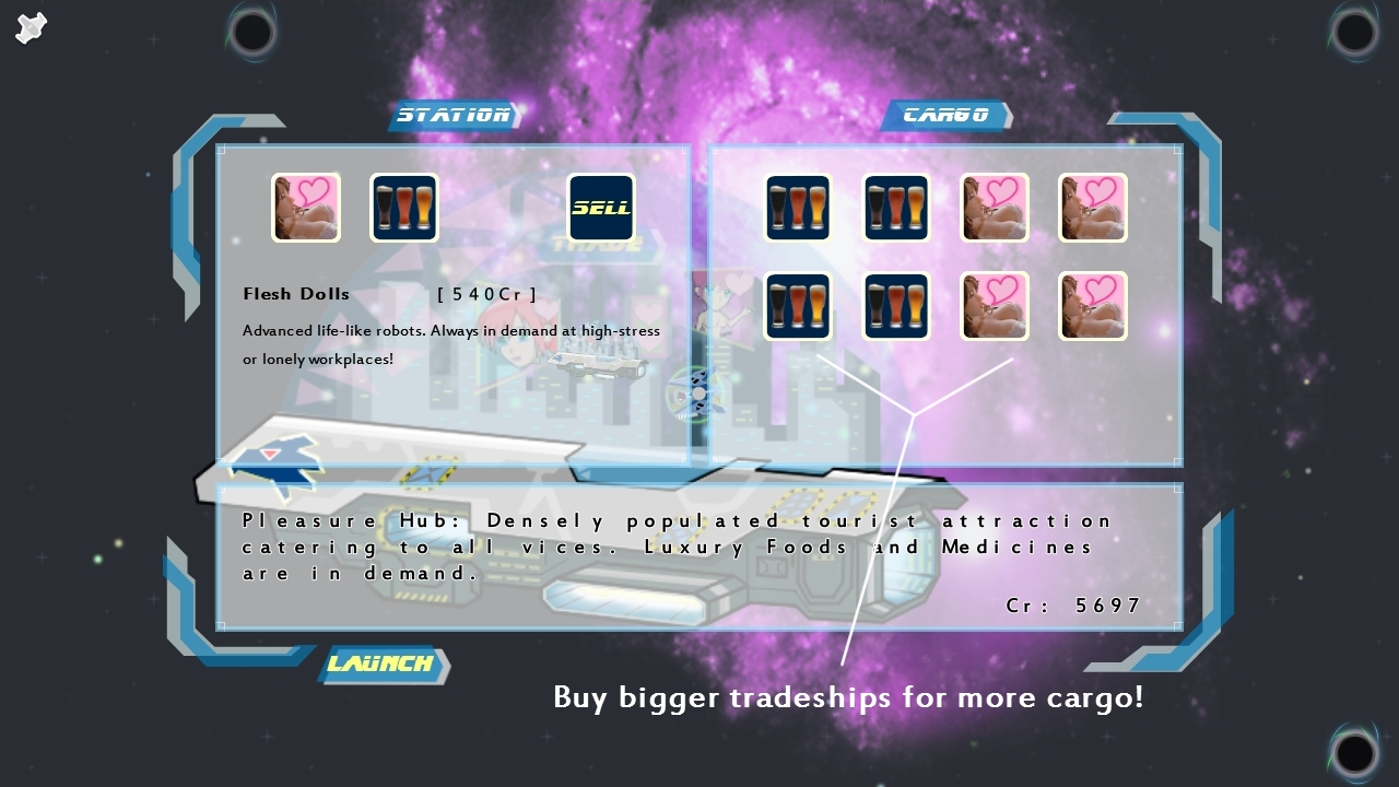 Cargo space is limited in starting ships, especially Fighters which are cramped enough for a pilot. For the trading enthusiasts, there is a special Trade Corvette available for purchase that has strong shields and a big Cargo compartment, perfect for hauling through dangerous areas!