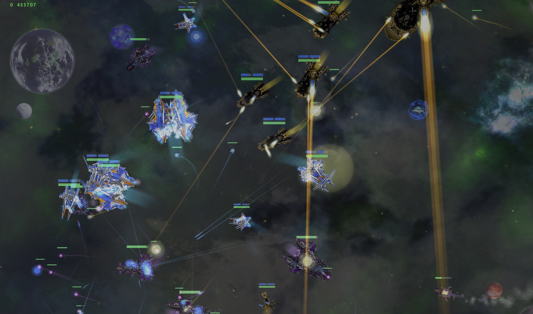 More screenshots, of two major factions (Empire vs Starborn) in a fleet battle: