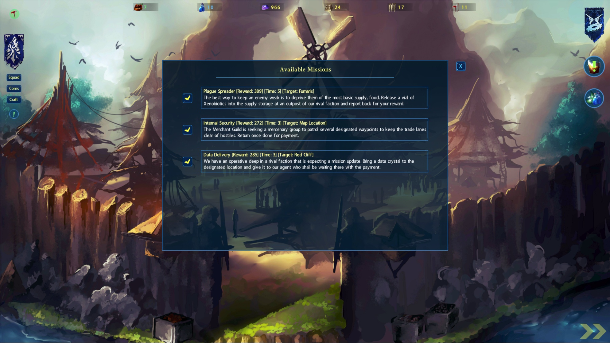Squad Management, Missions, Crafting, Trading & UI