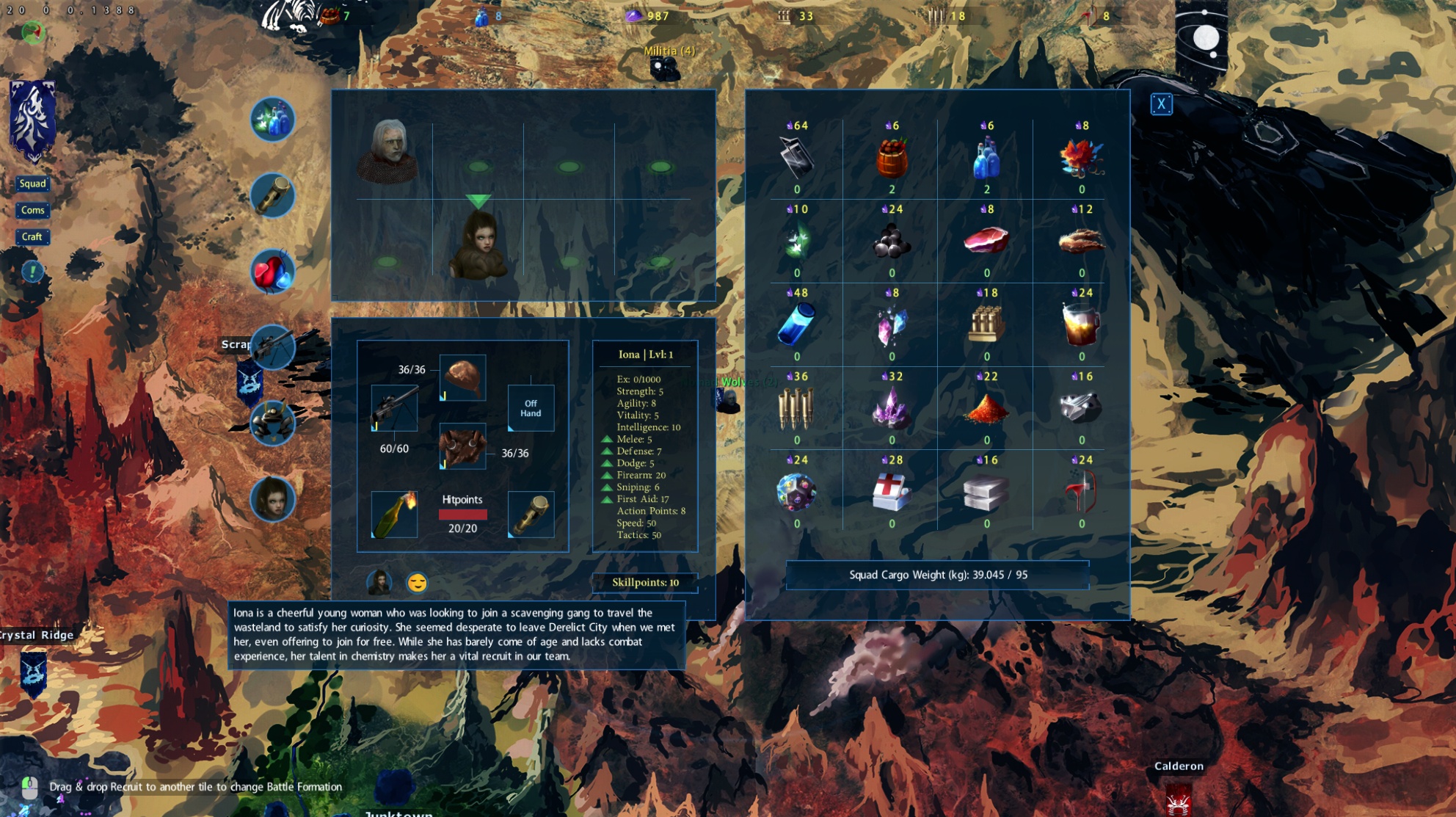 Some of the recruits you acquire are skilled in crafting and so they become valuable members of your squad. Iona is a trained chemist, she is capable of making all the consumable items for the team and also Firesand and Munitions.